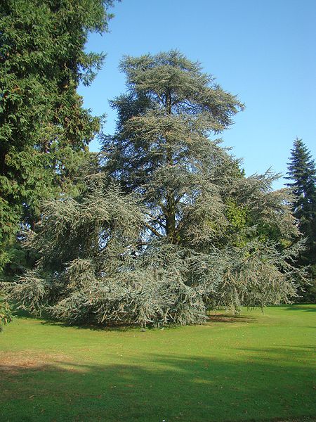 Needle-like leaves arranged spirally on young shoots Form: Pyramidal in youth; flat topped with broad horizontal branches with age; picturesque. Difficult to transplant; best used as a specimen tree; Heat tolerant; least cold hardy of cedars